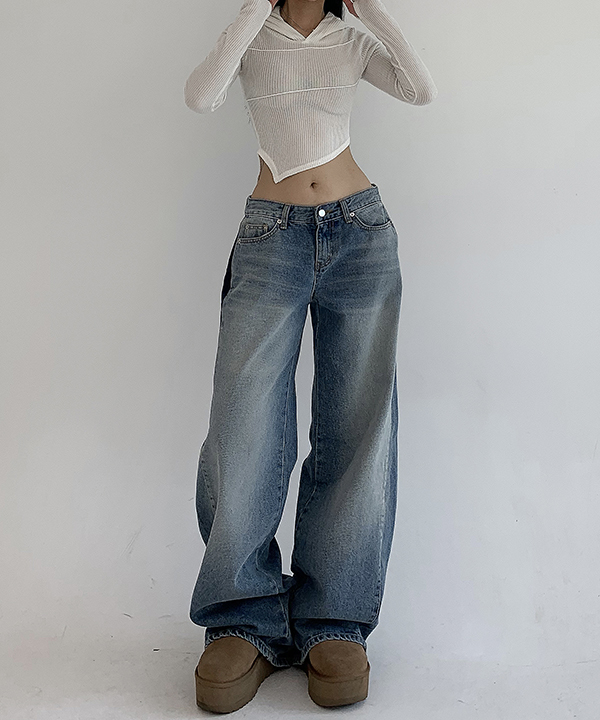오드 유니크 데일리 데님 로우라이즈 와이드 팬츠(흑청,중청)