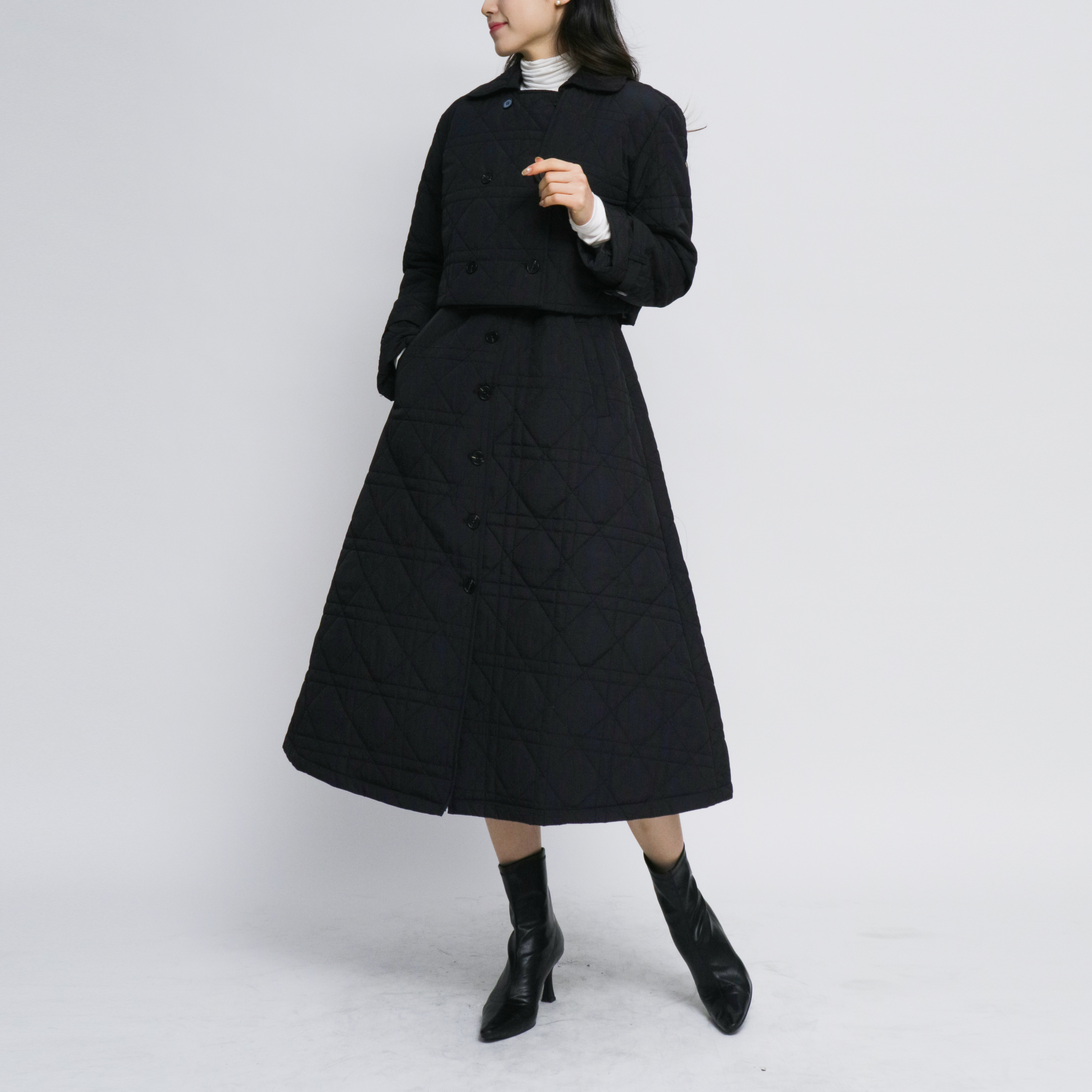 트렌치 퀄팅 패딩 투피스 세트 2col 여성 겨울 민소매 벨트 롱 원피스 숏 패딩 자켓