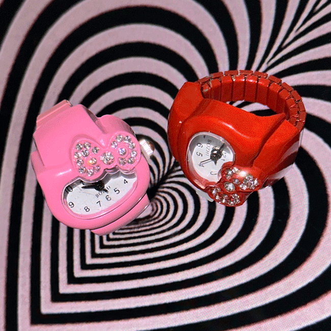 [인싸템1+1]하트 고양이 리본 반지 시계 반지 손가락 시계 반지 커플템 우정템 패션용시계반지
