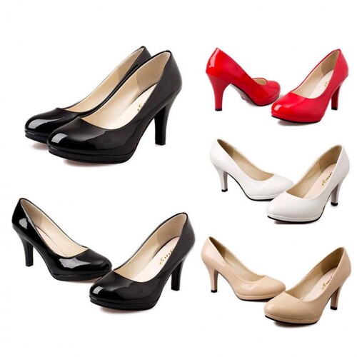 여자 유광 에나멜 펌프스 구두 8.5cm 하이힐 둥근코