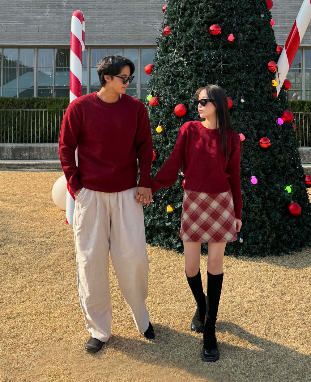 *단독특가[연말룩/세트가능] 크리스마스 커플 시밀러룩 데이트룩 남녀공용 긴팔 니트 여자 크롭 니트 골덴 코듀로이 팬츠 아가일 미니 스커트 세트 커플룩 커플니트 겨울 연말 파티룩