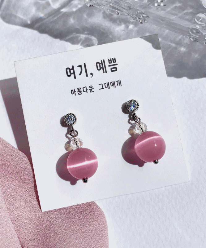 [MADE] 은침 코튼 핑크 캣츠아이 원석 귀걸이 귀찌