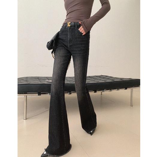 부츠컷 흑청 하이웨스트 데님 청바지 슬림 찢청 검정바지