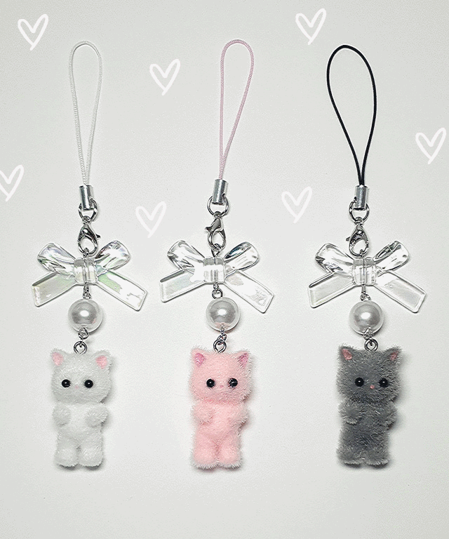 🎀당일출고🎀발레코어 공주 고양이 폰줄 키링 벨벳 인형 책갈피 열쇠고리 휴대폰 핸드폰 하트 부착 고리 다이어리 z플립 에어팟 버즈 친구 선물 우정 커플 화이트 핑크 그레이 블랙