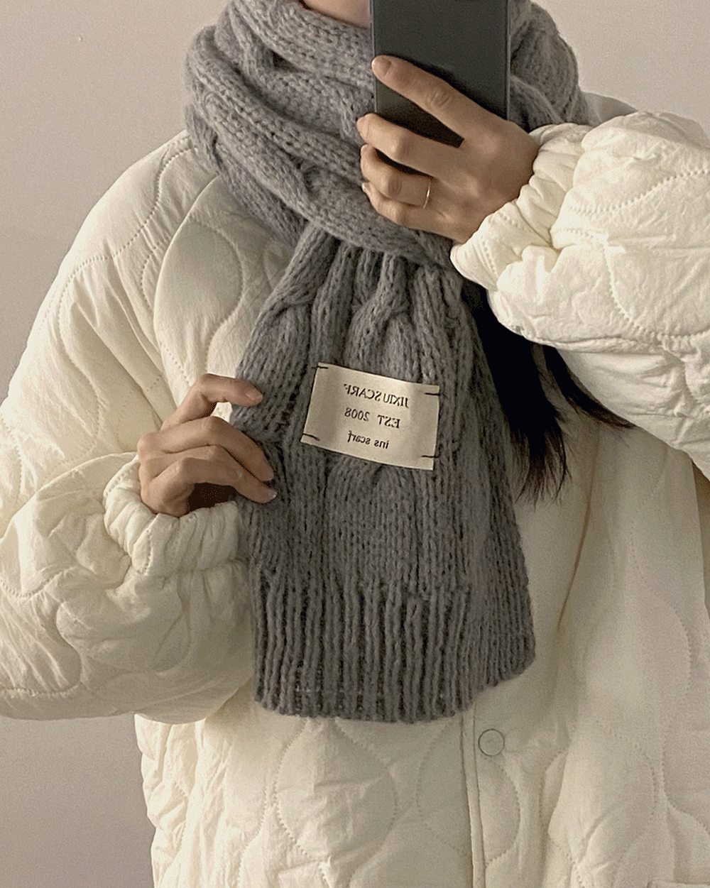 미토 겨울 꽈배기 레터링 포근 니트 롱 머플러 목도리