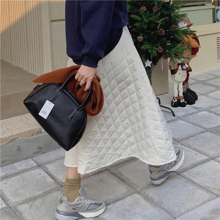 (당일출고/따숩/강추) 밴딩 A라인 플레어 루즈핏 빅사이즈 롱 미디 퀄팅 누빔 다이아 아가일 롱 미디 맥시 하비 겨울 패딩 스커트 치마 3color