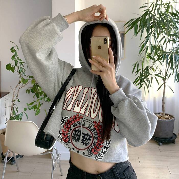 브루클린 기모 크롭 힙합 후드 티셔츠