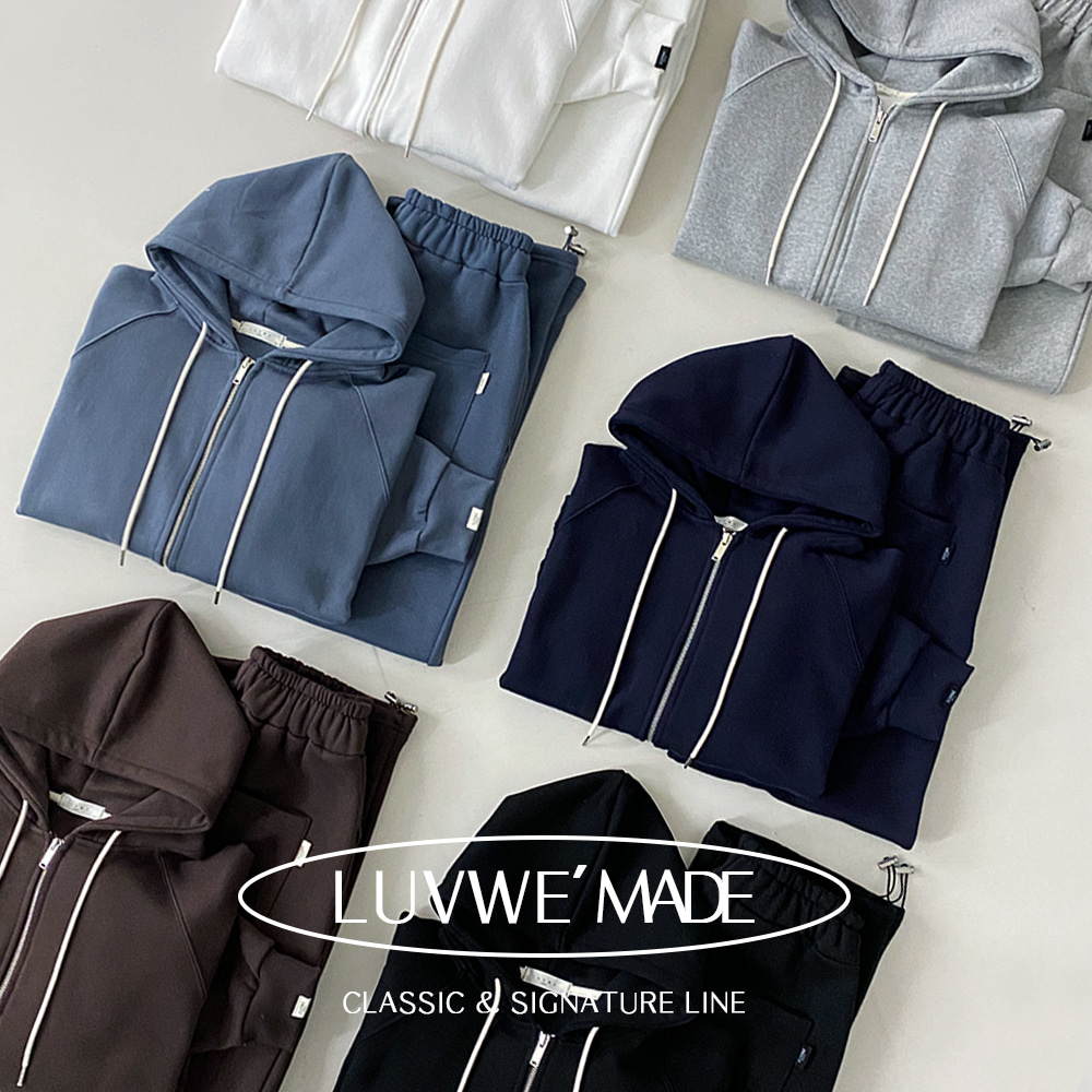 [MADE/단독구매가능] 3단쭈리 기모 반트 투웨이 스트링 나그랑 후드집업 + 와이드 팬츠 트레이닝 세트 SET (6color) LUVWE' made