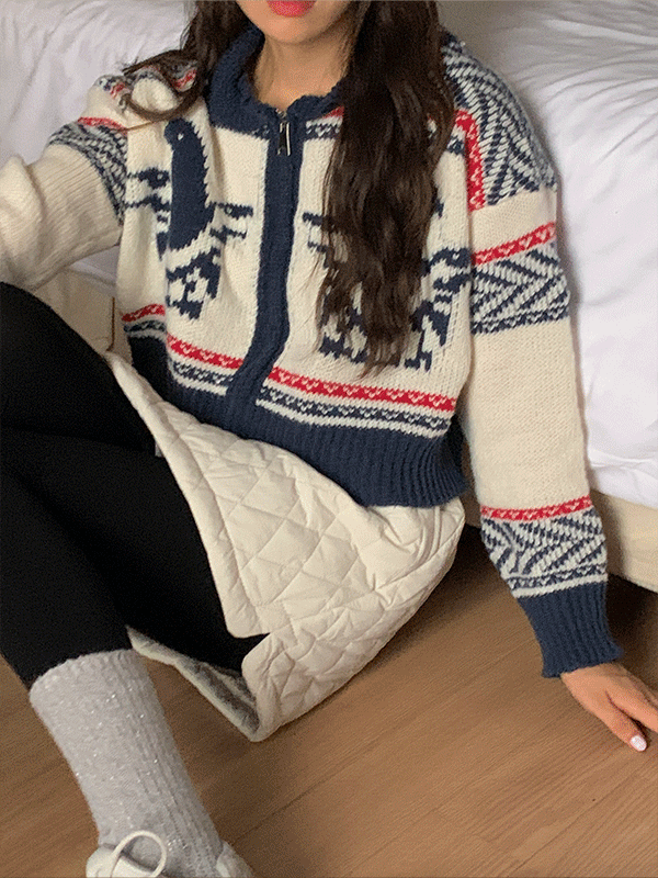 [당일발송] 요푸 노르딕 배색 니트 가디건 집업