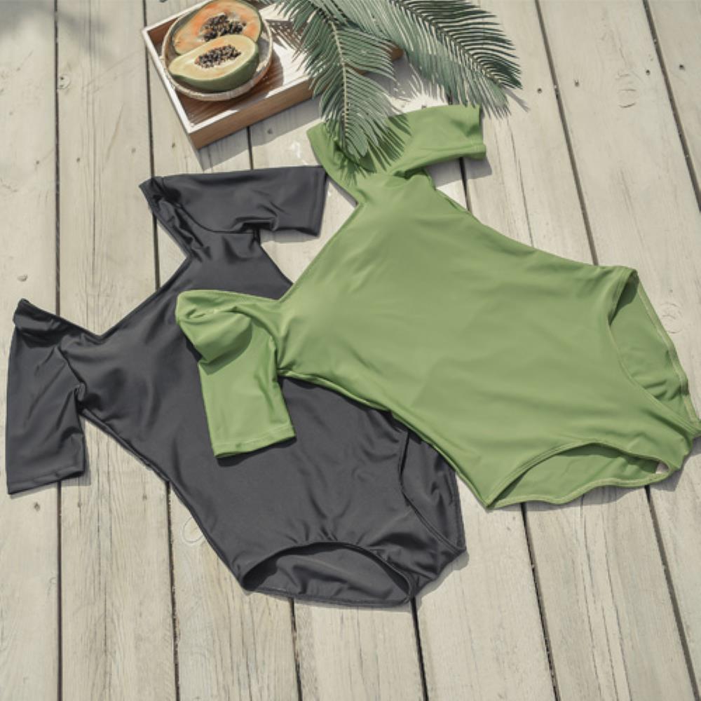 여자 여름 심플 슬렌더 블랙 그린 원피스 수영복