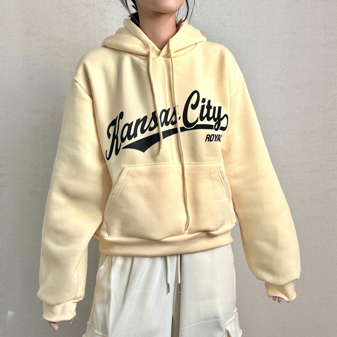 [겨울신상/기모빵빵/캐주얼/데일리/오버핏] 기모 캔자스 레터링 후드티 3color