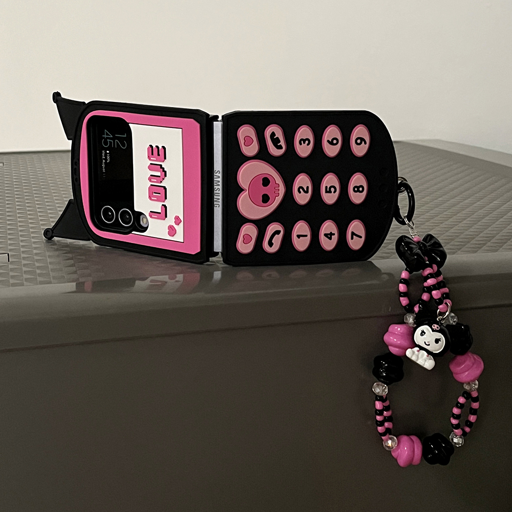 [당일출고] 블랙 핑크 캐릭터 키링세트 전화기 갤럭시 Z플립 실리콘 케이스