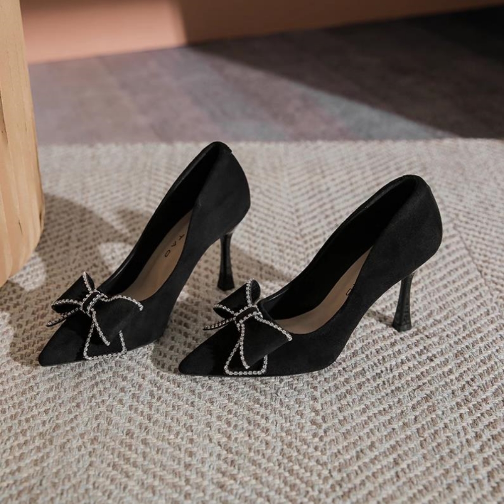 클리타 5,7,9cm 블랙 스웨이드 리본 스틸레토 하이힐 1color