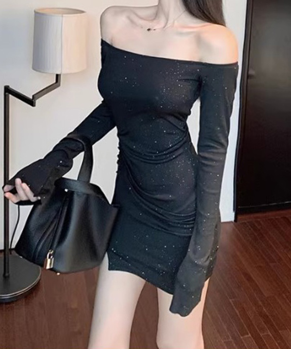 샤인 밤하늘무드 오프숄더 슬림핏 심플 미니원피스