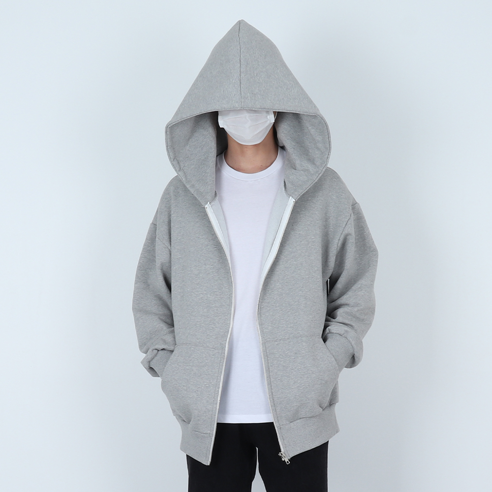 [쭈리/기모] 빅사이즈 오버핏 후드집업 남녀공용 커플 왕모자 대두 모자 기모 후드티 무지 기본 티셔츠 벌룬핏 집업 그레이 회색 후디 데이트 유니섹스