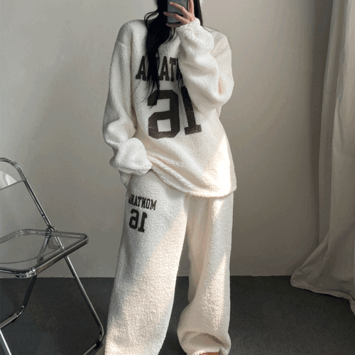 빅사이즈 양면 보아 후리스 맨투맨 와이드 밴딩 팬츠 세트