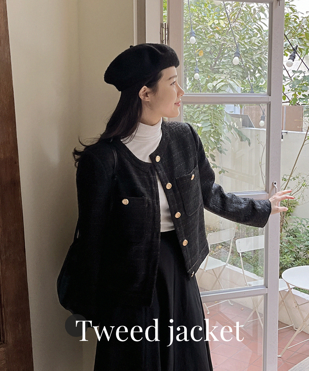[하객룩추천💐][MADE] 리밍 라운드 노카라 트위드자켓 (44~100) (박서이즈자켓-어깨패드-금장버튼-간절기자켓-하객룩-데일리룩-격식룩-모임룩-노카라넥-출근룩-체형커버)