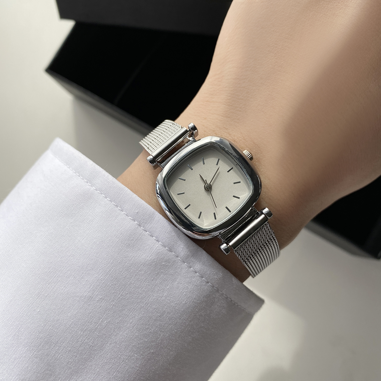 [당일출고] 라운드 스퀘어 스틸 심플 클래식 시계 [화이트 블랙] WW.004