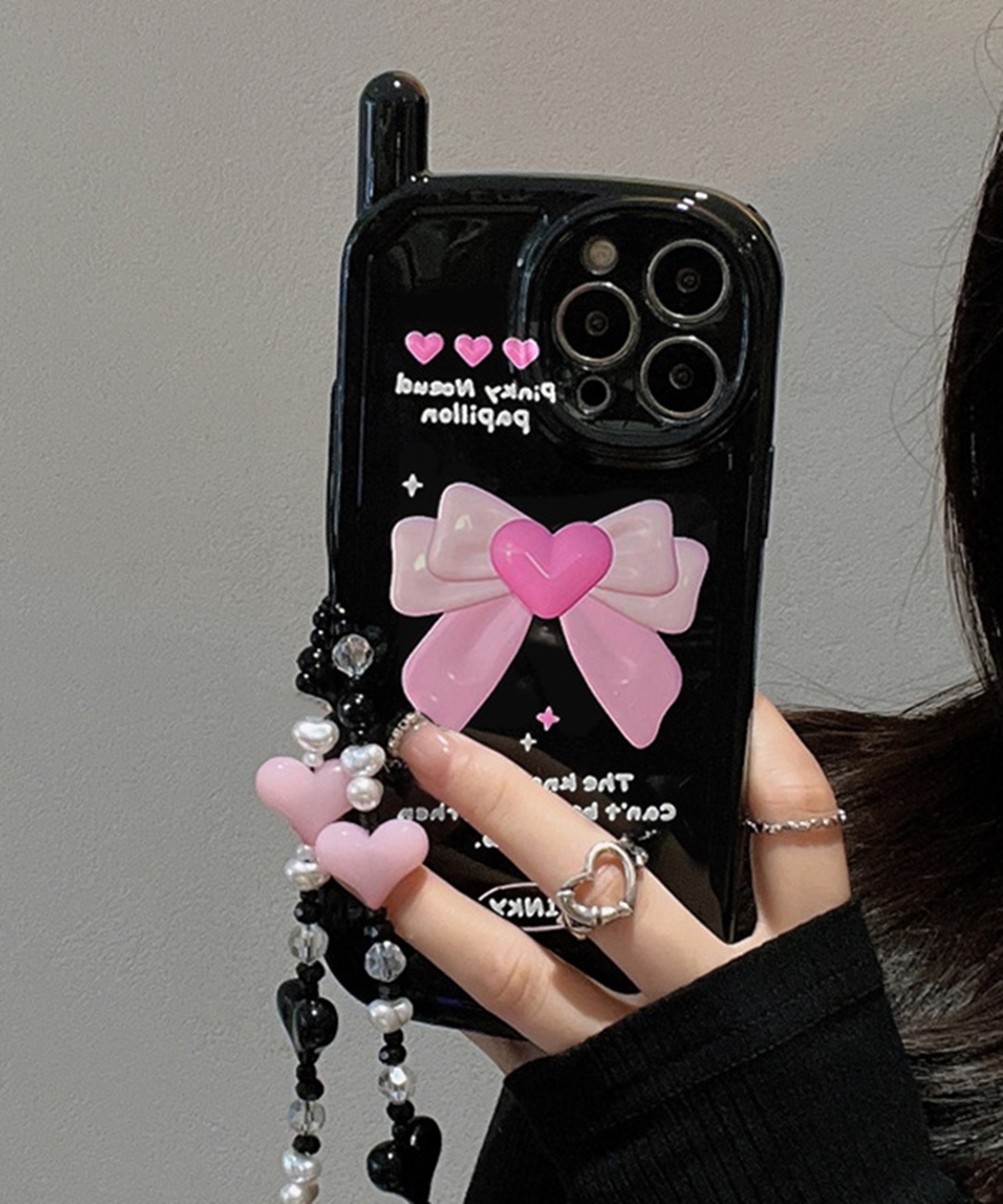 17입고🖤오늘출발 블랙 핑크 리본 발레코어 안테나 스트랩 아이폰케이스 레트로 휴대폰 핸드폰 (아이폰 7 8 SE2 SE3 11 12 13 14 15 16 17 프로 맥스)