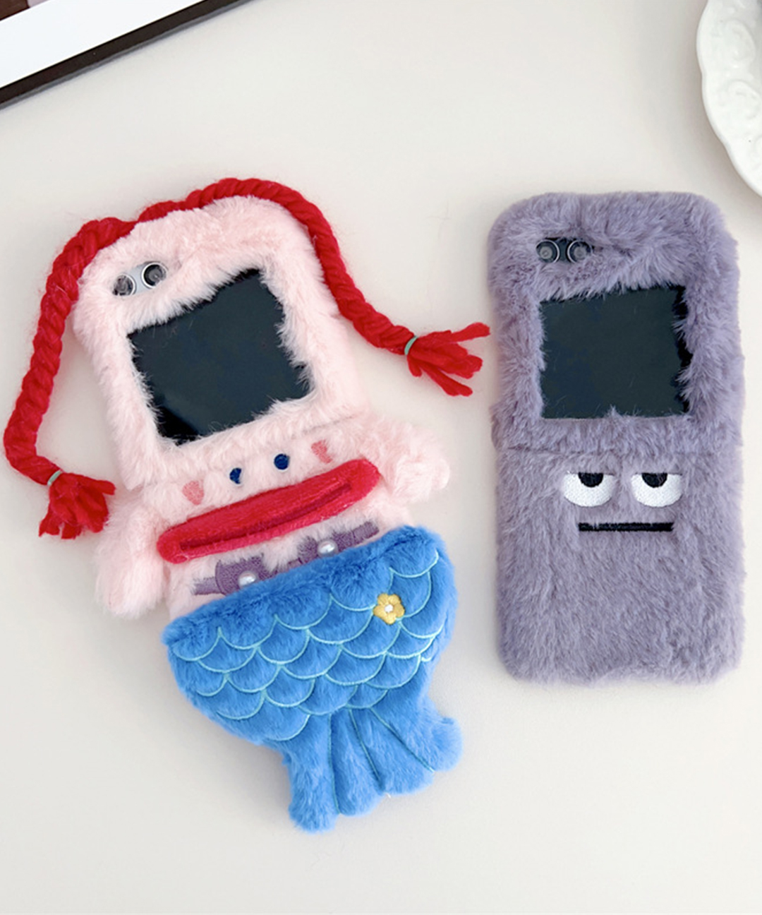 귀여운 삼성 갤럭시 Z플립 지플립 3 4 5 6 인어공주 보라 눈알 퍼 겨울 털 유니크 키치 특이한 우정 커플 특이한 심플 핸드폰 휴대폰 폰 지플립케이스 지플립4 Z플립5 케이스