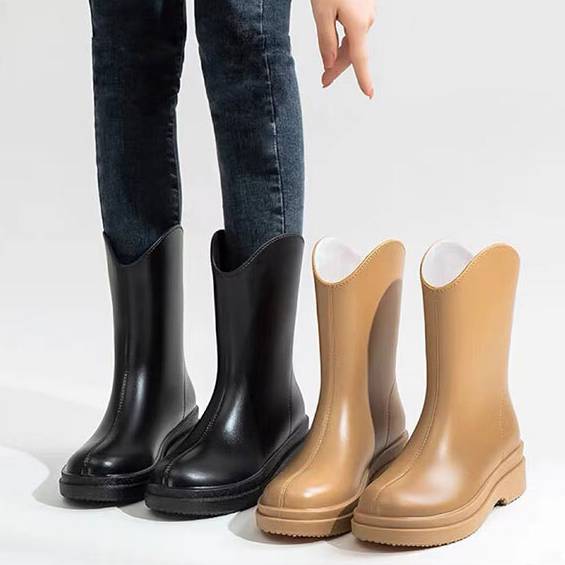 여자 둥근코 키높이 발목 가죽 장화 레인 부츠