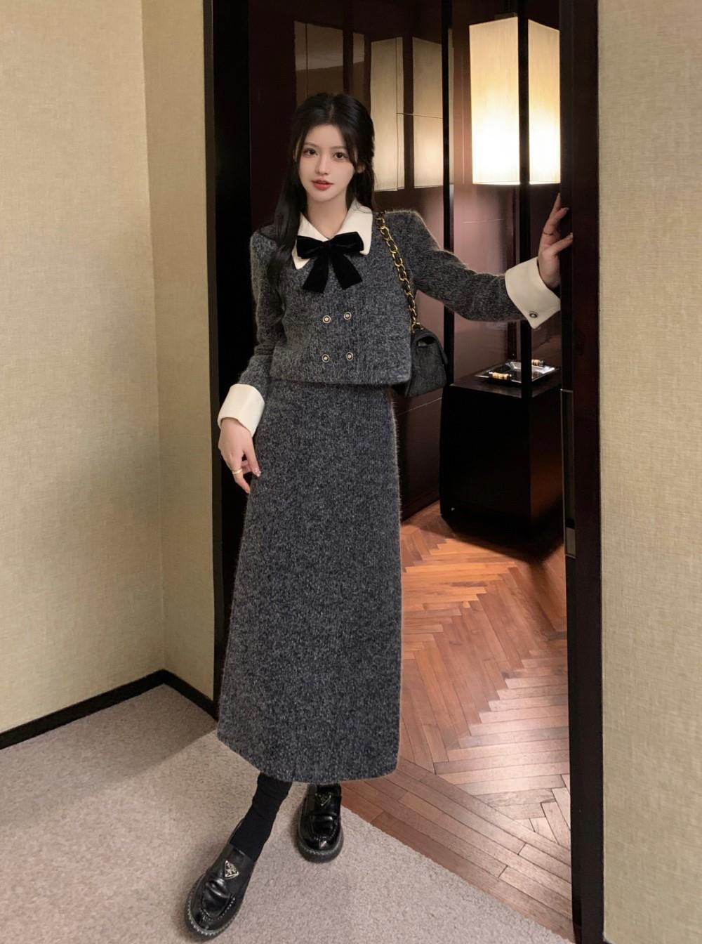 해외배송/여성 럭셔리 정장세트 예쁜 하객패션 강력추척 가을 겨울 롱스커트 숏자켓