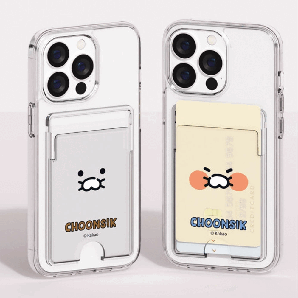 아이폰13 프로 프로맥스 카카오 춘식이 카툰 더블카드 투명 하드 케이스