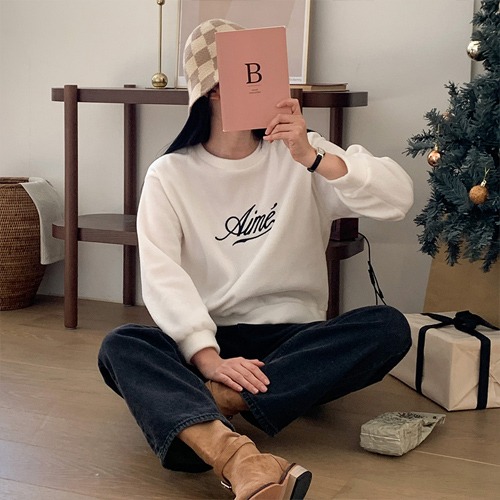 에이미후리스맨투맨 - 플리스 소재로 따스한 소재감으로 겨울까지 입기 좋은 타이포 디자인의 라운드넥 맨투맨 티
