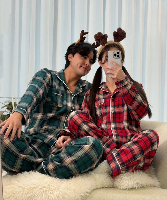 *최저가[2사이즈/크리스마스] 커플 파자마 크리스마스 연말룩 커플잠옷 타탄체크 잠옷세트 연말 파티룩 홈웨어 할인 봄 가을 겨울잠옷 커플룩 시밀러룩 이벤트 초특가