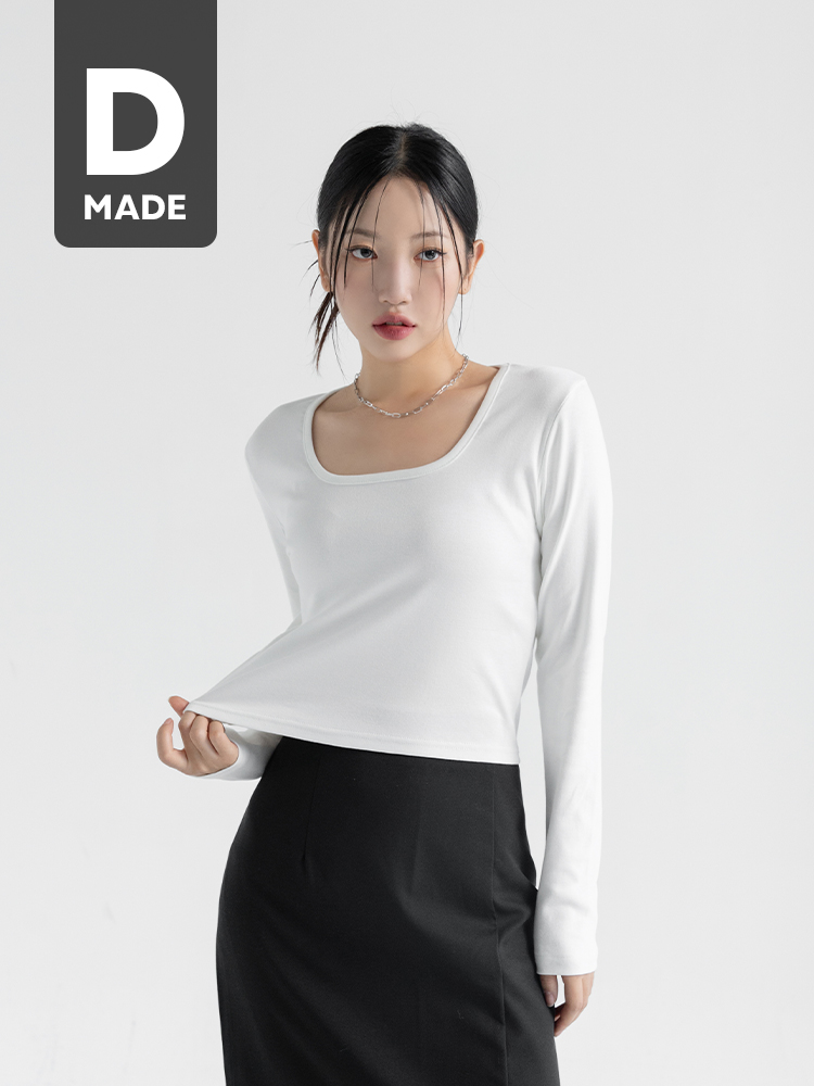 [7천장돌파][MADE] 빅사이즈 44-99 엘라스틱 베이직 스퀘어 유넥 스판 크롭 긴팔 티셔츠