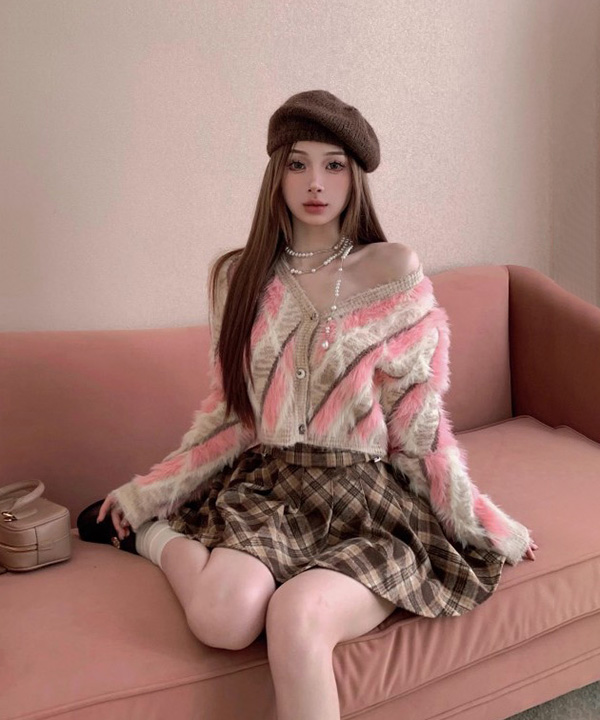 무료배송 [코디세트 가디건+스커트] 커밍연말 핑크초코 투피스셋업