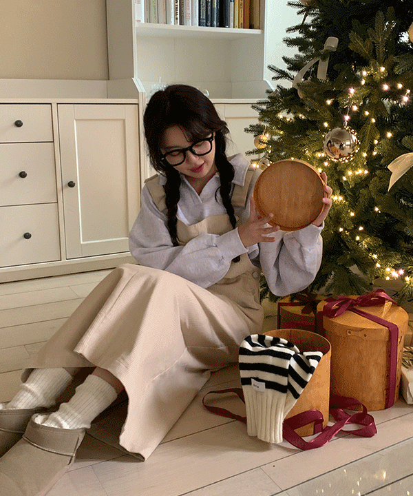 블리프 뒷트임 코듀로이 롱 멜빵 원피스