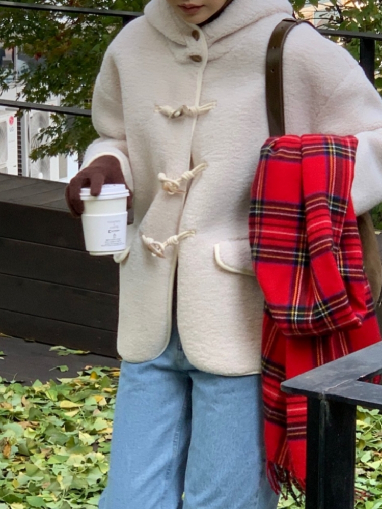 libre 리브레 스노우 울 양털 시어링 후드 떡볶이 더플 자켓 2color