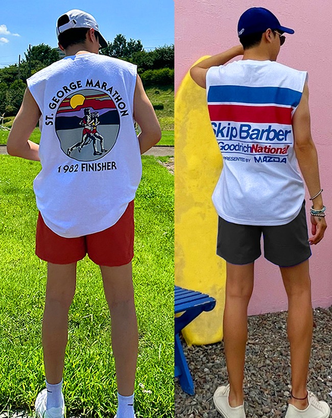 [나시+반바지SET] [1+1]나시티+스윔반바지 바캉스 민소매 슬라브리스 남자나시 허니문 신혼여행 남자수영복 커플나시 나일론팬츠