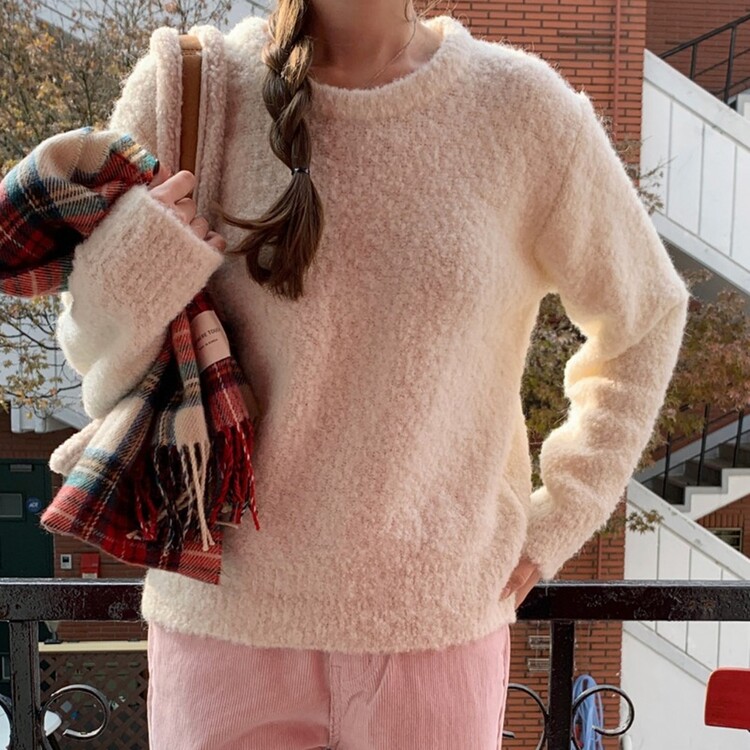부클니트 가을겨울 라운드넥 베이직 무지 니트티