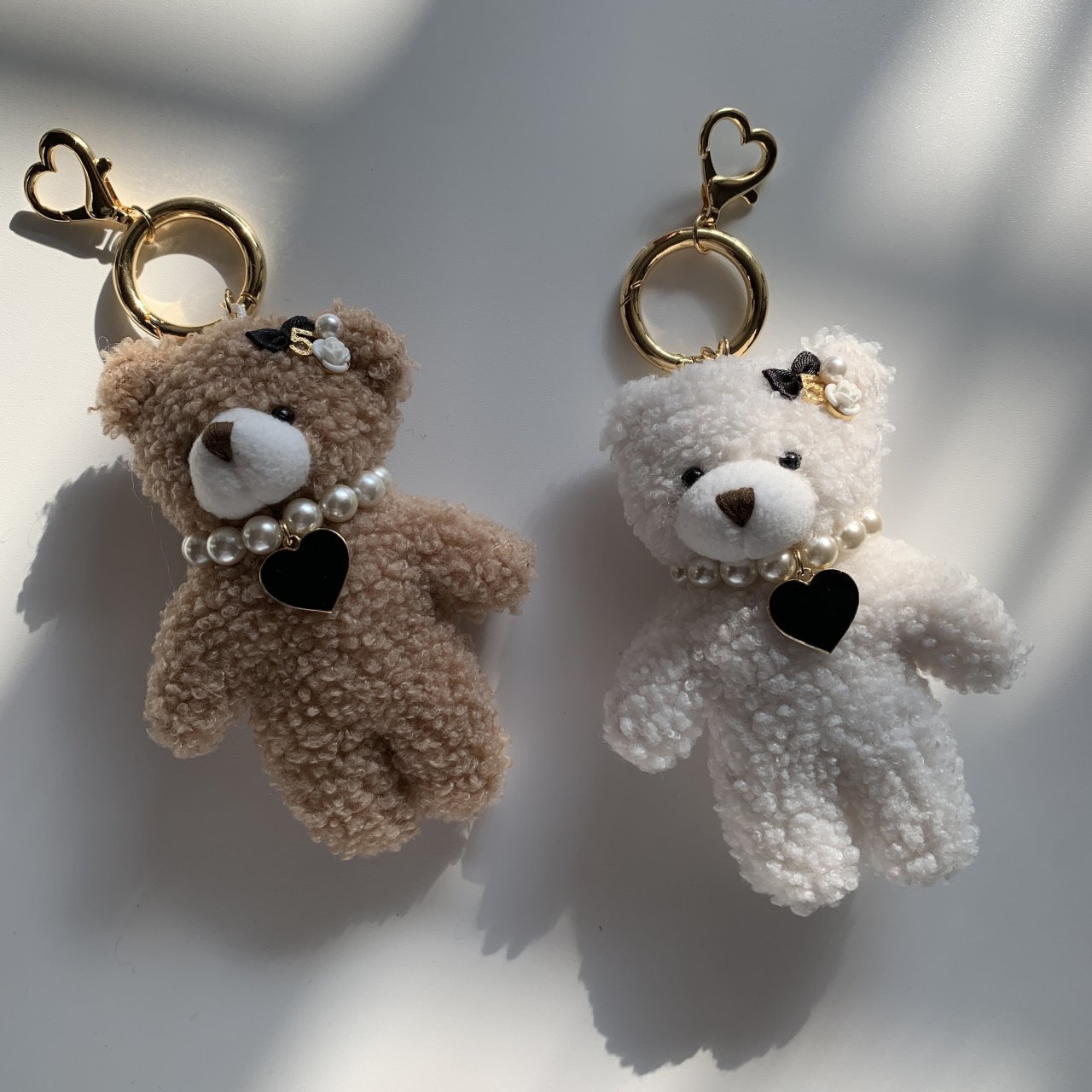 하트 목걸이 곰돌이 키링 인형 핸드백 베어 갈색 곰 흰색 아이보리 베이지 검정색하트 5 리본