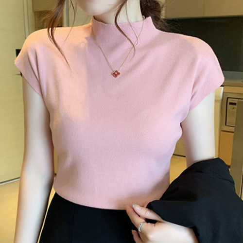 여성 반목 니트 반팔티 반목폴라 티셔츠 긴팔티 캡소매 니트티 캐주얼 티 여성미 물씬