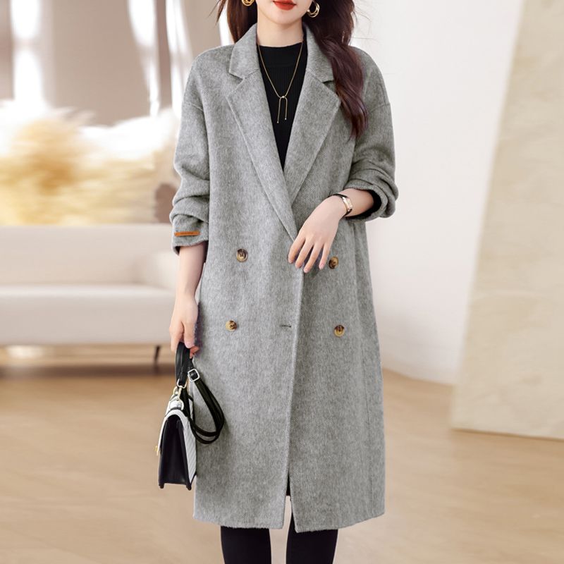 스타일아유 클랙식 겨울 코트 오버핏 롱모직 코트 울 여자 데이트룩 LC0040