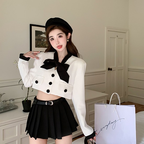 연말파티룩 여친룩 크리스마스 크롭자켓 플리츠 미니 스커트 투피스 세트 (2size)