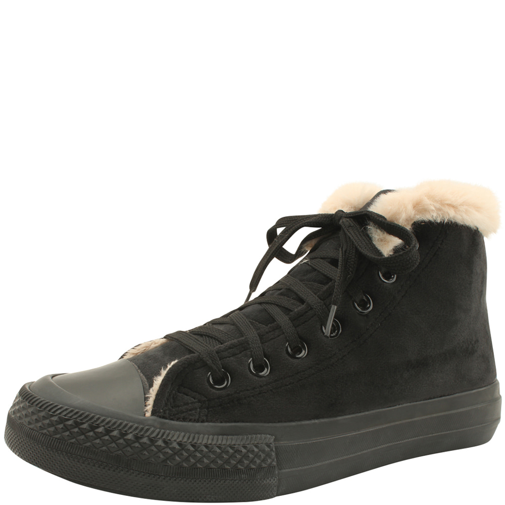 퍼 하이탑 캔버스화 방한 스니커즈 올블랙