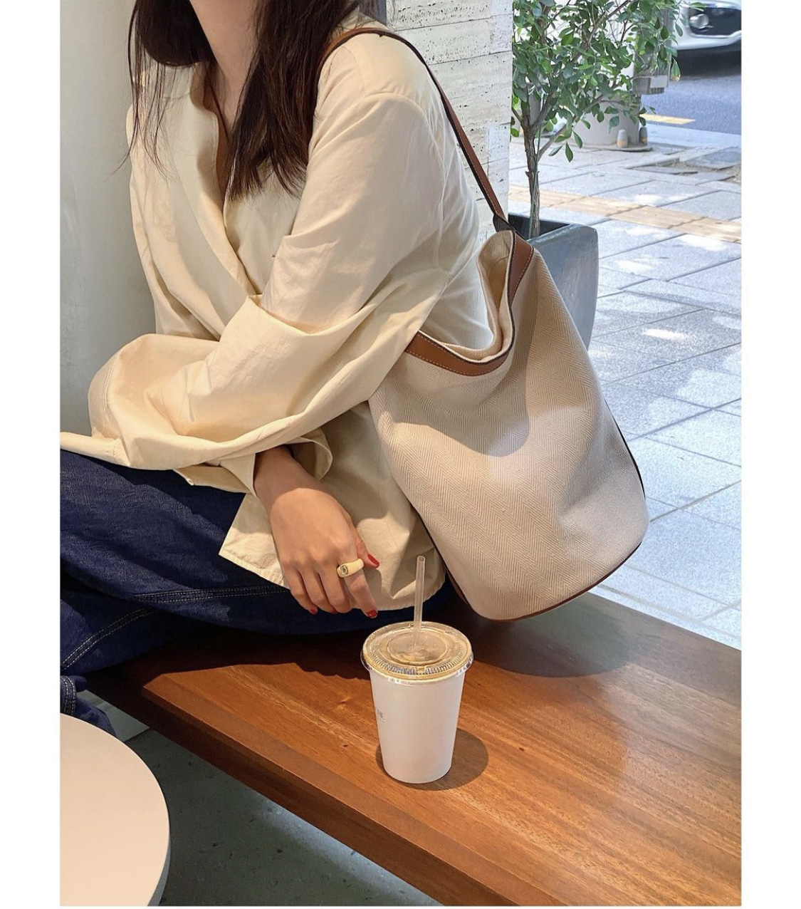 리얼레더 캔버스 토트숄더백