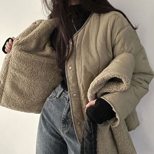 양털 안감 캐주얼 목도리 세트 심플 패딩