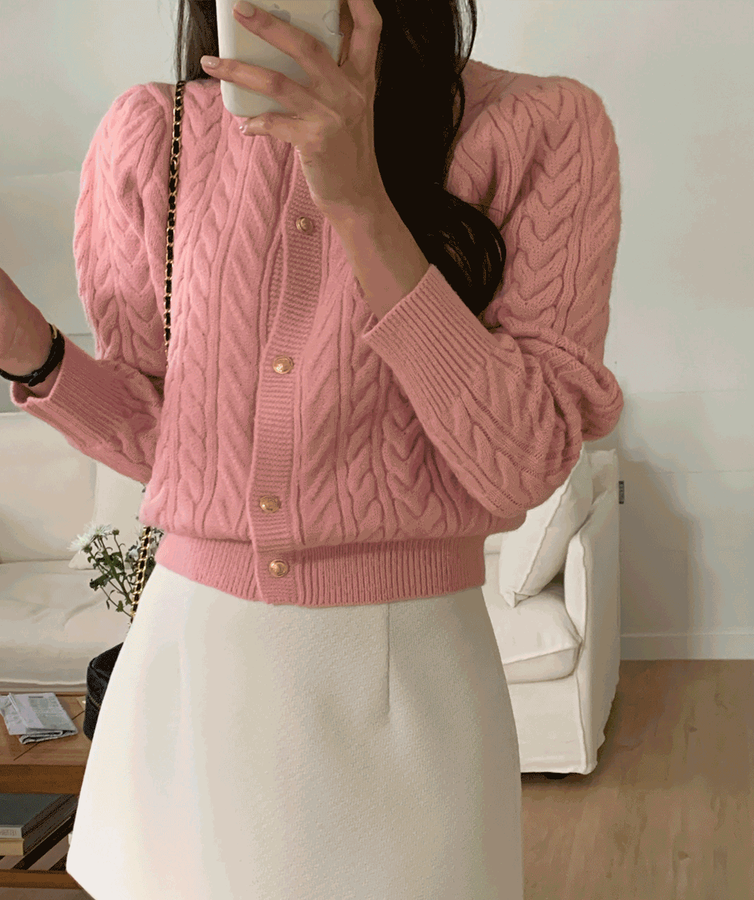 [가을신상] 베리 금장 꽈베기 가디건 가을 겨울 니트 퍼프 케이블 라운드넥 크롭 니트가디건 하객룩 데이트룩 데일리룩 오피스룩 20대 30대 3color