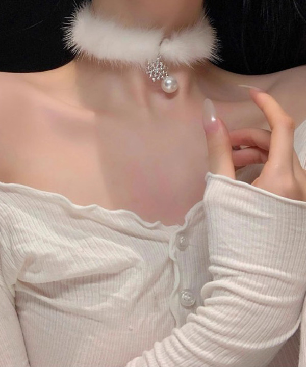 무료배송 겨울진주 퍼초커목걸이 (화이트)