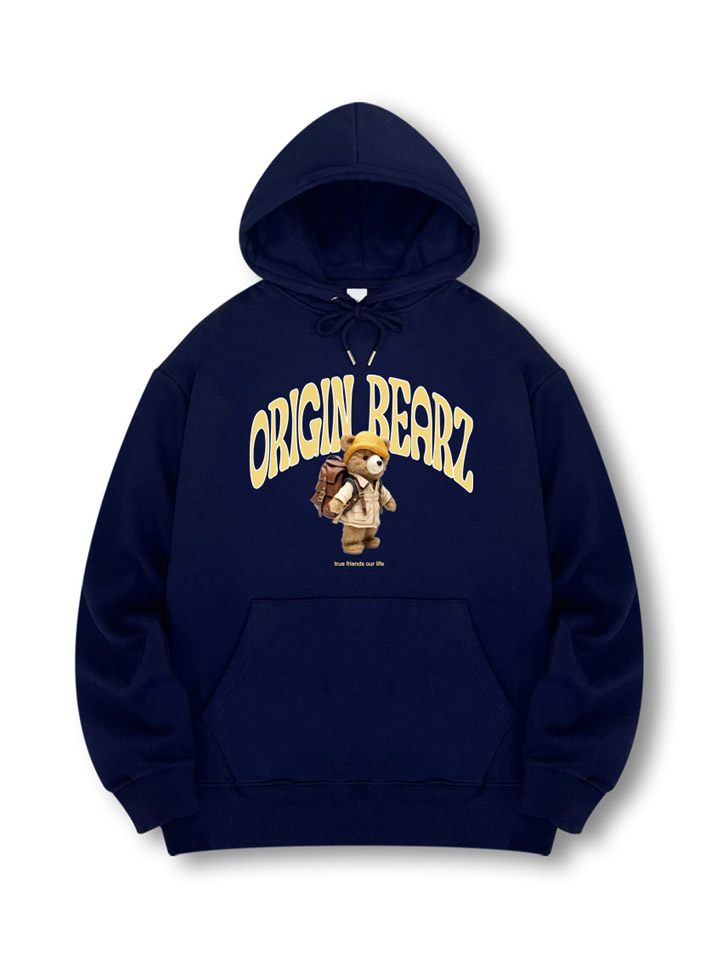 [국내생산/기모선택] 귀여운 곰 프린팅 오리진베어 후드티 부드러운 특양면 커플 티셔츠 루즈핏 빅사이즈(M~4XL)