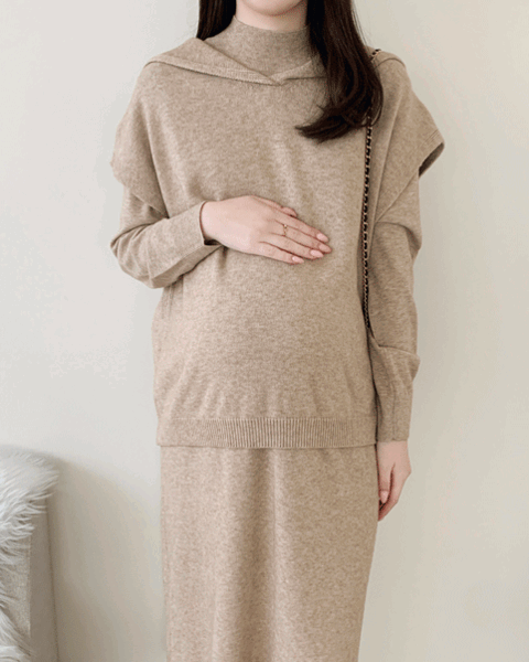 멜르 반목니트 임산부원피스 조끼 세트 가을 겨울 임부복