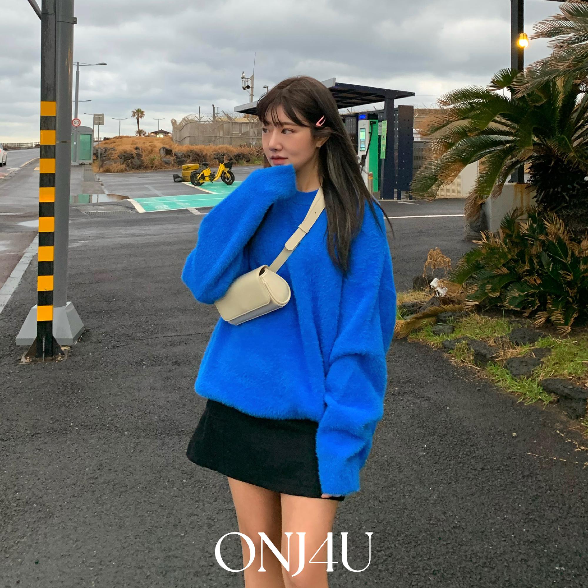 여자 앙고라 라운드 니트 코발트블루 오버핏 니트