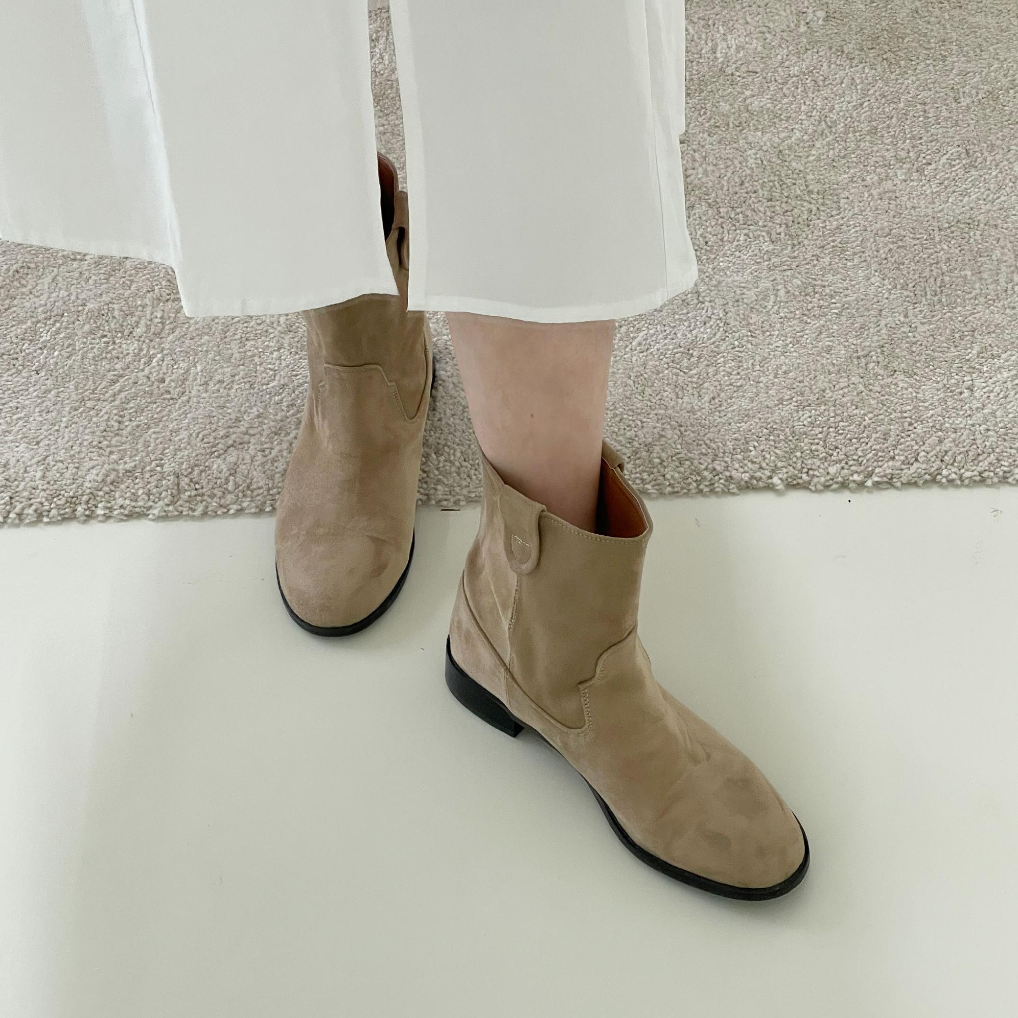 여성 스웨이드 웨스턴 부츠 숏 미들 앵클 첼시 통넓은 워커 데일리 신발