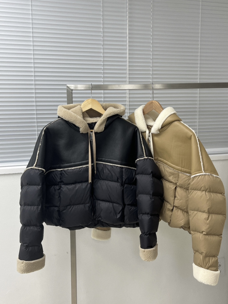 [로웰샵] 헤블 여성 겨울 배색 오리털 덕다운 후드 무스탕 패딩