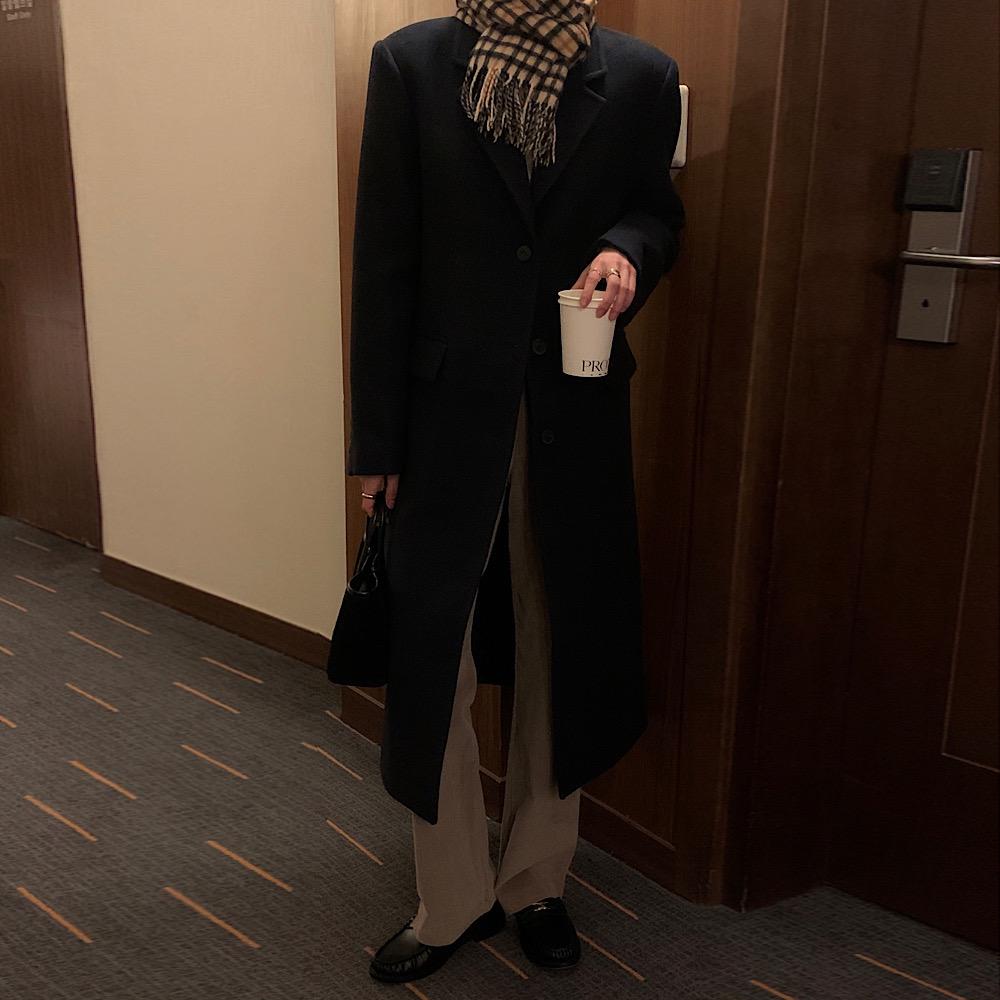 카이 울 롱코트 차콜 네이비 핏보장 4온스누빔 겨울 일자핏 H라인